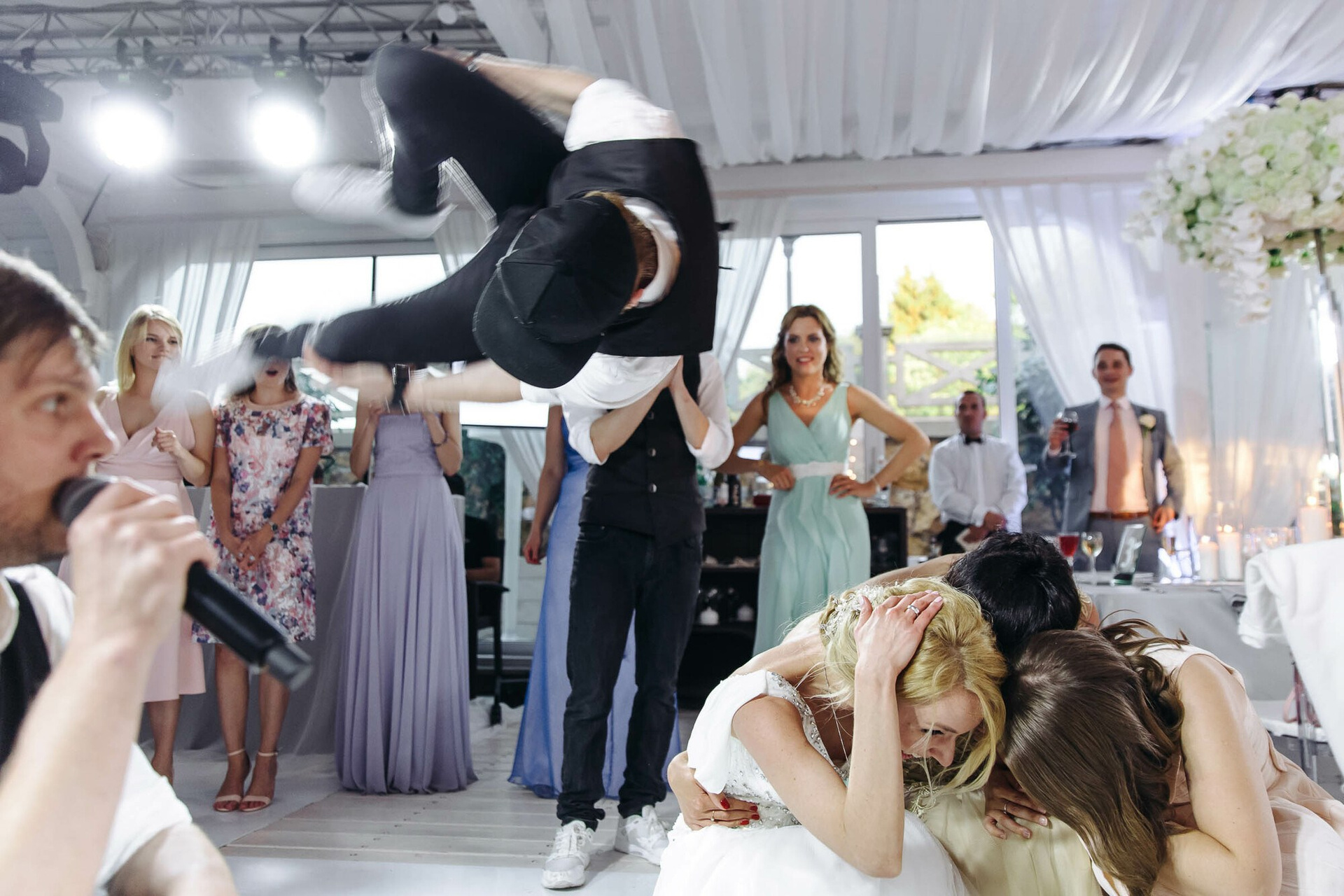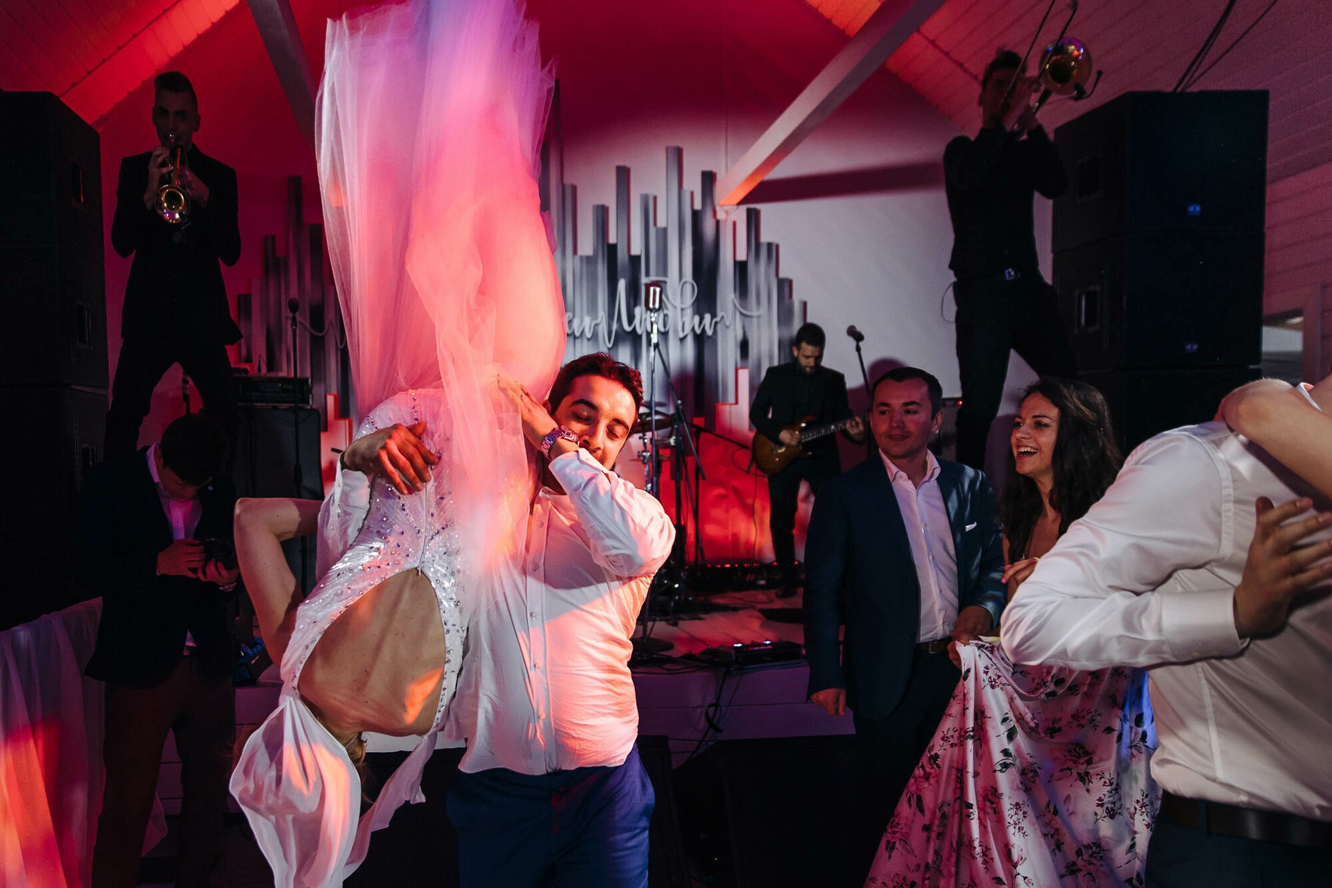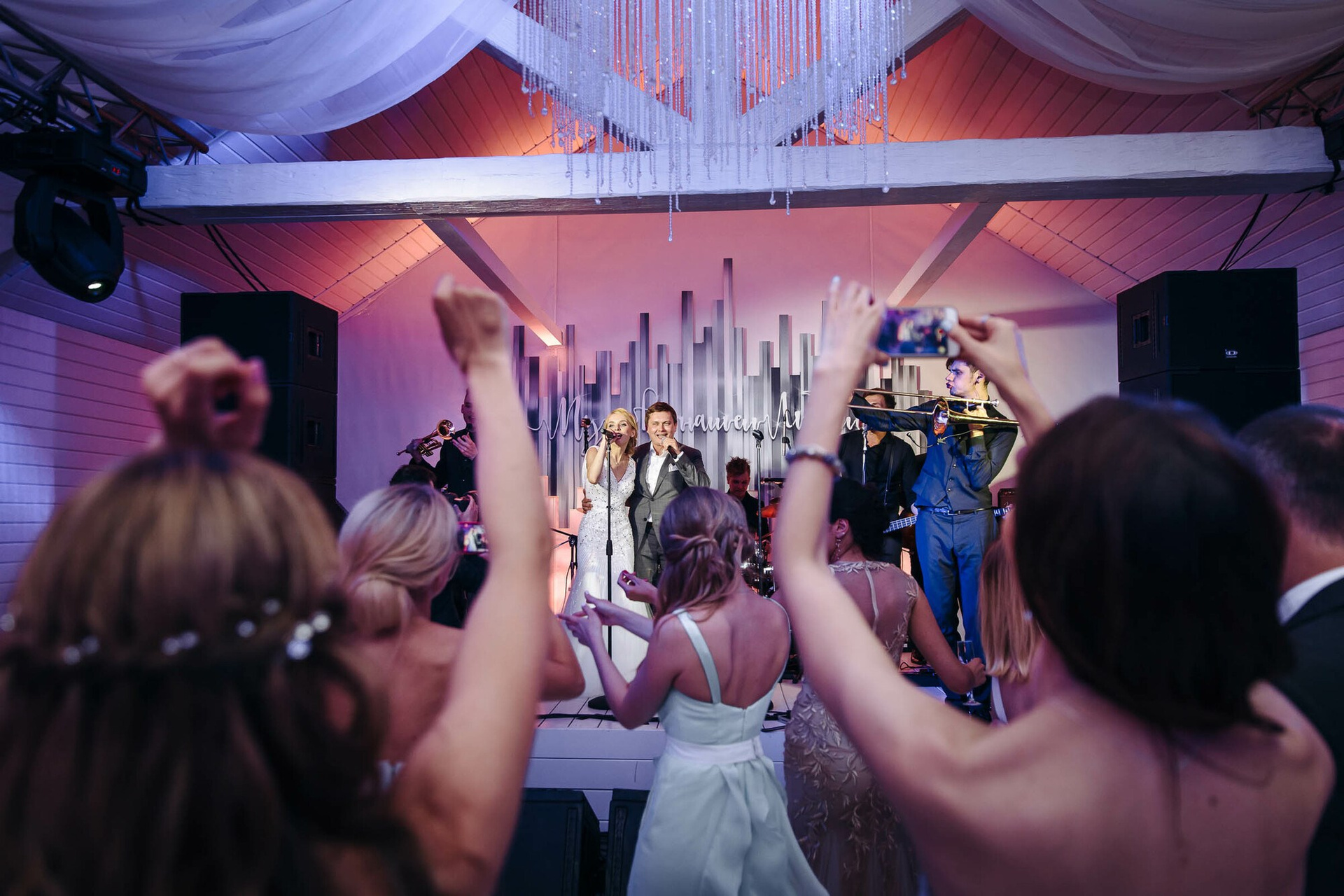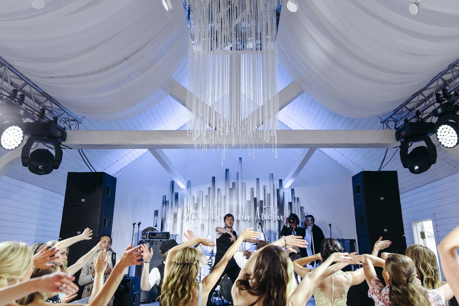 Стильное красивое и масштабное оформление в сочетании с невероятной энергетикой и местами даже диким отжигом! В основном здесь репортажная свадебная съемка.